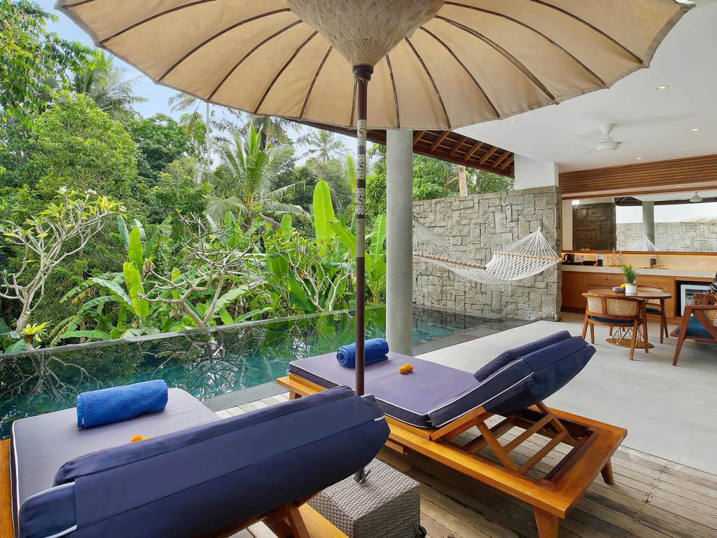 一卧室别墅配有私人泳池,设有大号床,可以俯瞰稻田或森林景观。别墅可容纳最多3名成人或2名成人和1名儿童,并提供额外加床
